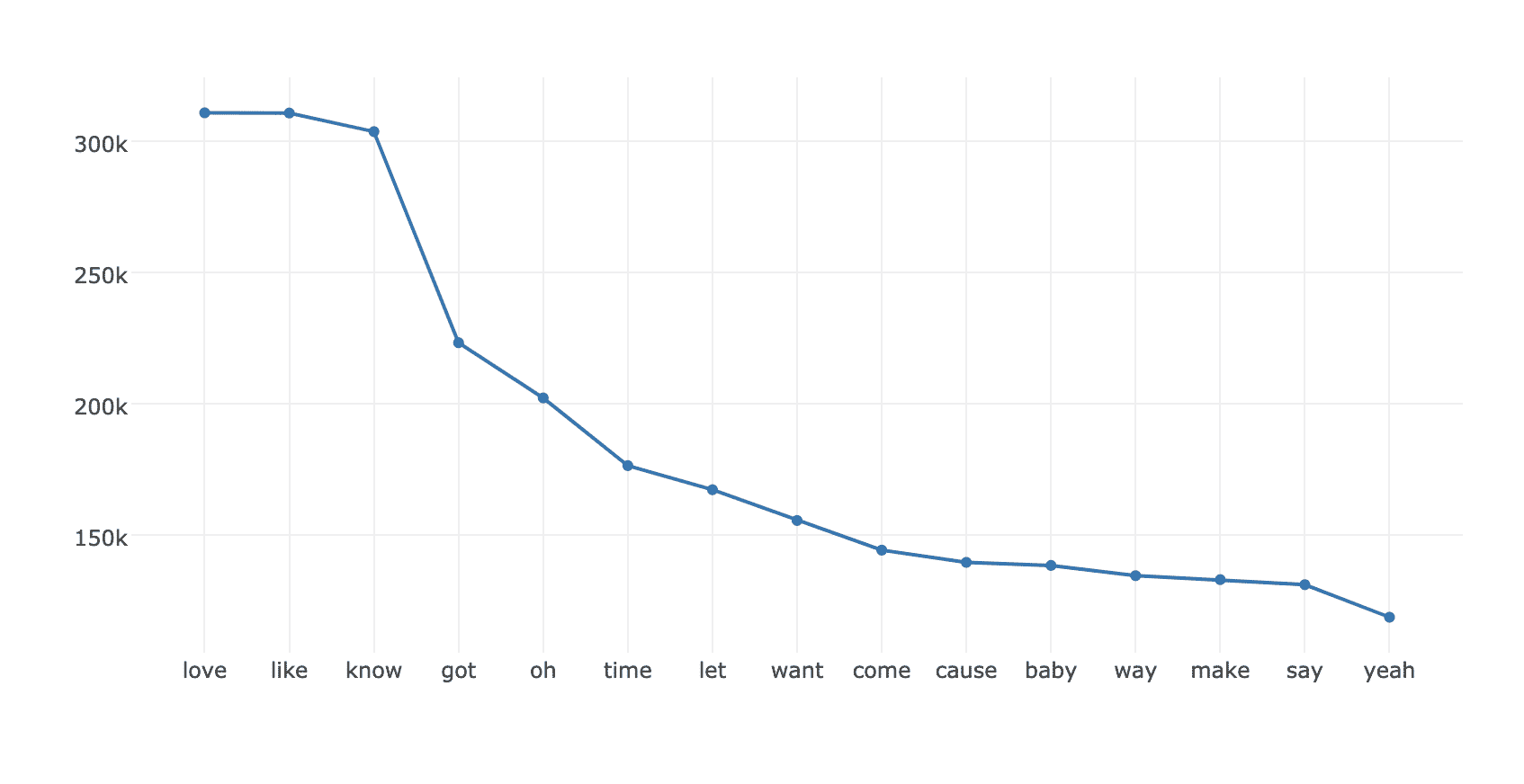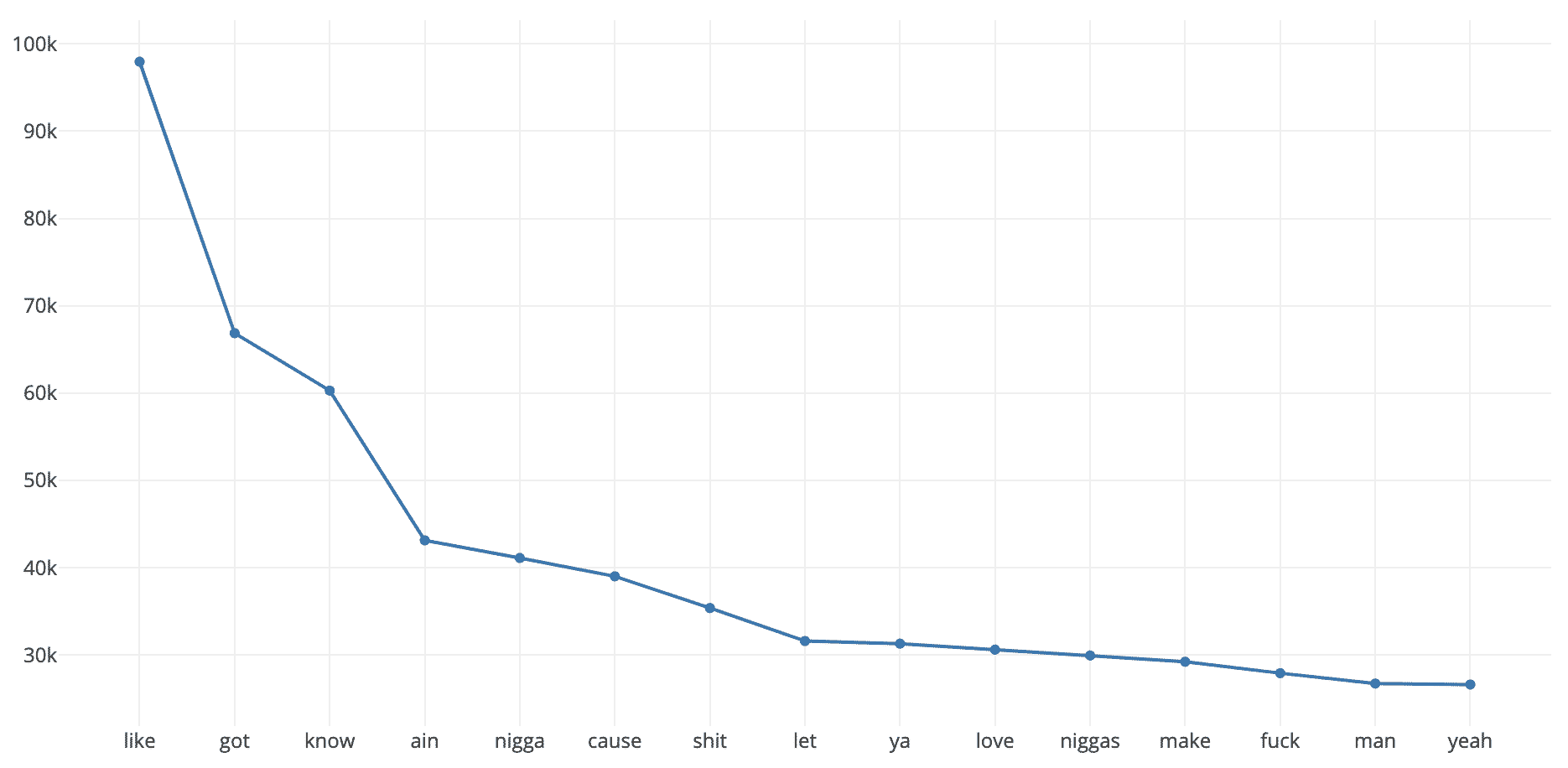 For example, in that case, the resulting chart is the most popular word frequencies in Hip-Hop lyrics: